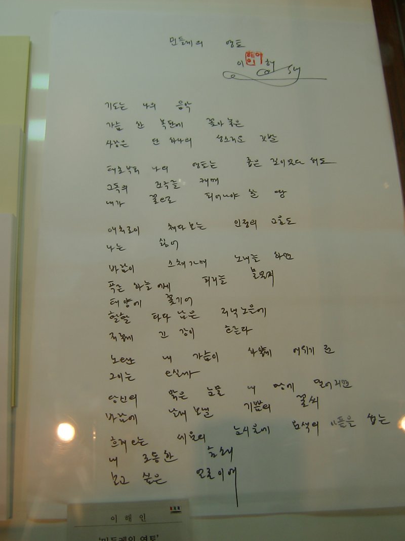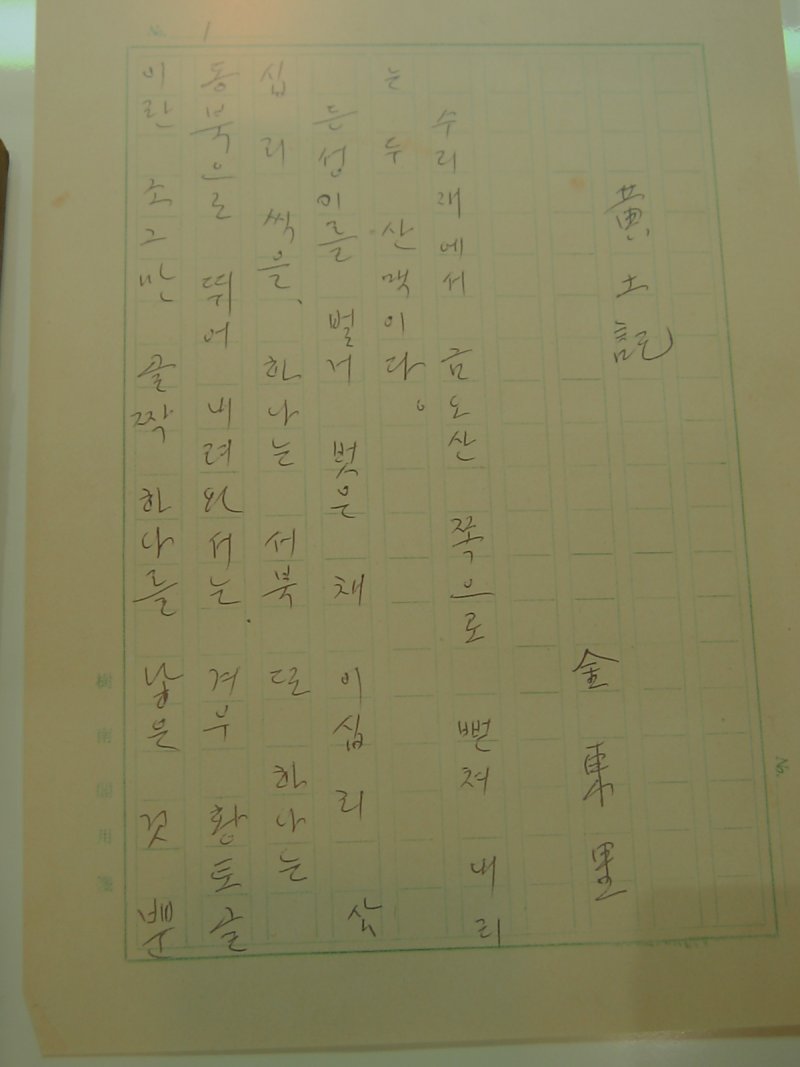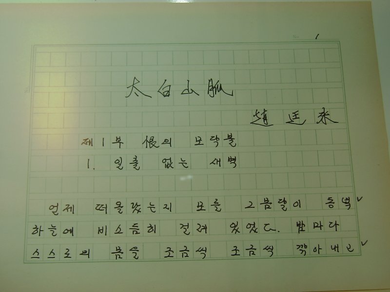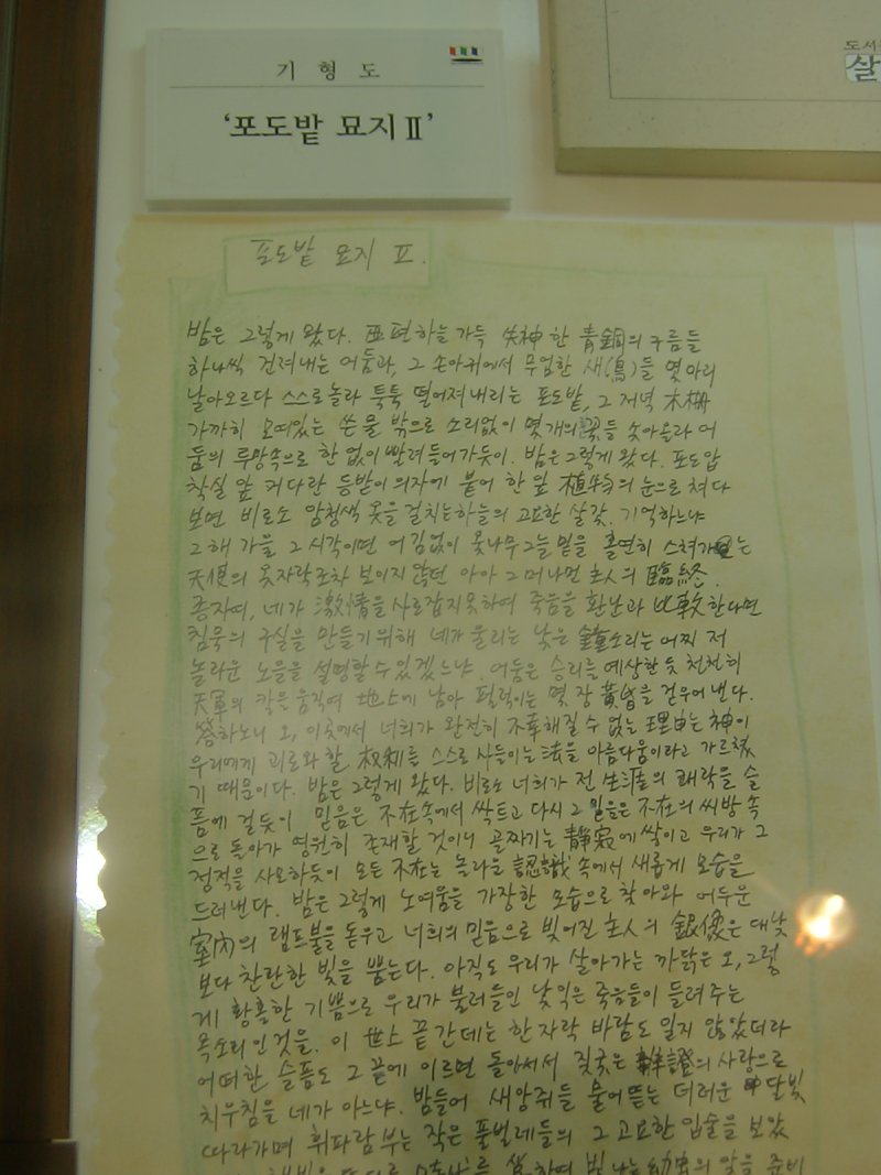 서울도서전에서 찍은 육필원고 사진입니다. 요즘 분들이야 다 컴퓨터를 이용하시겠지만 이렇게 손으로 쓴 원고를 보고 있으니 묘한 기분이 들더군요. 지금 올린 것 보다 더 많은 분들의 글이 있었는데 사진은 다 찍었지만 상태가 좋지 않아서 일부만 올립니다. 올린 것도 사진 상태는 않좋습니다. ㅠ.ㅠ