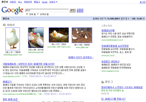 상위에 이미지 4건을 뉴스처럼 상단에 노출하는 경우 (키워드 : 오리)