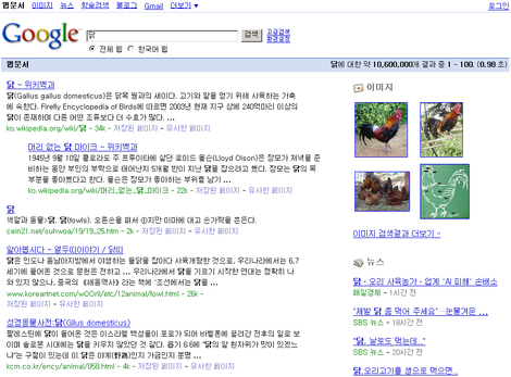 이전처럼 이미지를 오른쪽에 모아서 보여주는 경우 (키워드 : 닭)