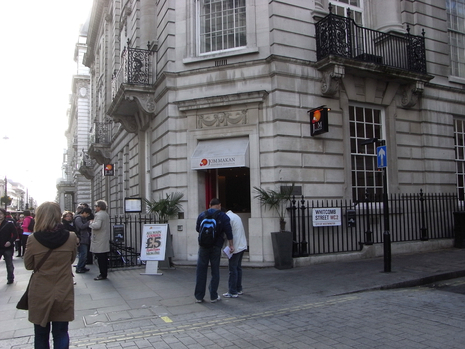 슬슬 배가 고파져서 인터넷에서 봐두었던 말레이시아 음식점에 갔습니다. 내셔널갤러리 바로 옆에 있었는데, 점심은 메뉴 할인이 있어서 싸게 먹을 수 있었어요. 메뉴는 칠리 새우 볶음밥? 정도 되는 것이었는데 아래처럼 밥이랑 새우랑 따로 주더군요. 음식점 이름은 Jom Makan이라는 곳으로 지금 사진을 보니 월-금요일에는 5파운드로 인하해서 점심을 먹을 수 있다는 안내가 보이네요. 입구는 이렇지만 안으로 들어가면 일반 음식점이랑 다를 바가 없었습니다. ^^