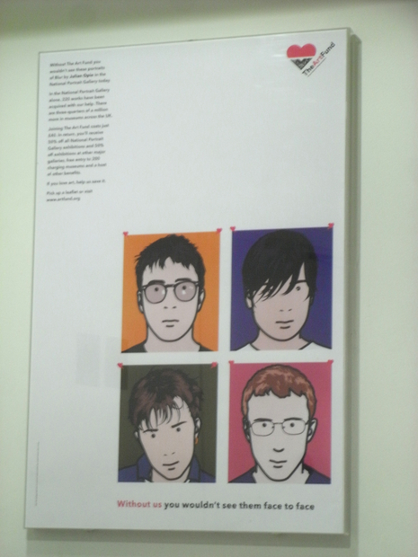 이어서 향한 곳은 내셔널갤러리 바로 옆에 있는 초상화미술관인 내셔널포트레이트갤러리였습니다. 이곳도 무료입장~ 사진촬영은 제한되어 있었지만, 화장실 앞에 걸려있는 마이클 줄리안 오피의 포스터를 살짝 찍어봤습니다. 이곳에서 블로그의 대표이미지로 사용하고 있는 딜리어스 경의 초상화를 직접 만날 수 있어서 좋았어요~. 엽서가 없었던 것이 아쉬웠답니다. ㅜㅜ