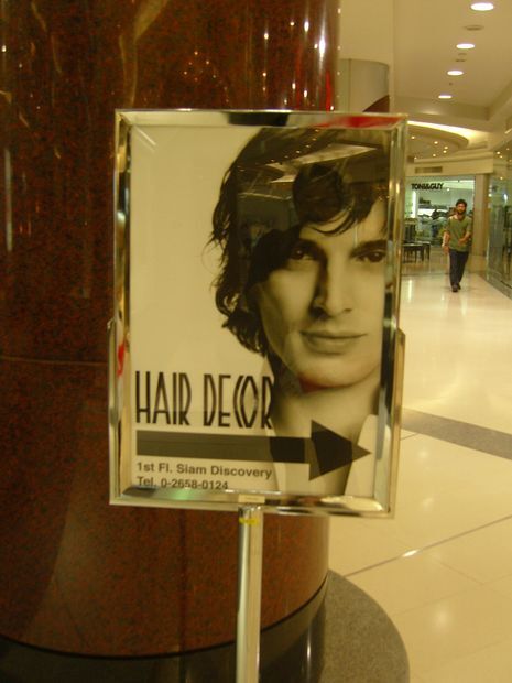 앞서 말씀 드렸듯이 딱히 뭘할까 하는 계획이 없었던터라 머리나 잘라야지... 하는 마음에 미용실을 찾아 돌아다녔습니다. 지난 방콕여행에서도 카오산로드에 미용실에서 머리를 자른 경험이 있었는데 이번에도 좀 좋은 곳에서 잘라 봐야지 했어요. ^^ 시암 디스커버리를 이곳 저곳을 기웃거리다 보니 오 여기도 토니앤가이가 있네~ 하고 들어가봤습니다. 스타일리스트에게 자르면 1,000바트! 앗 너무 비싸요.. 그 밑 스타일리스트(무슨 표현이 있었는데 까먹었어요)에게 자르면 700바트.. 흠.. 그래 한 번 돈을 써보자.. 했는데 마침(^^) 손님이 많아서 기다려야 한다고 하네요. 담에 오겠다고 하고는 시암 디스커버리에 있는 다른 미용실인 헤어 데코라는 곳을 찾았습니다. 이곳은 앞선 곳의 절반 수준인 370바트(기억이 가물가물) 정도였습니다. ^^ 우선 머리를 감겨주시고 - 3번 정도 감은 듯 ^^ - 자리에 앉히고 나서 어떻게 자를지 물어보시더군요. 잘 안되는 영어와 손짓으로 나는 옆머리가 많이 많이 뜬다... 학생이 아니라서 염색이나 요란한 것은 피하고 싶다... 짧아도 괜찮다... 를 전달했습니다. 다 자리고 난 결과는 대 만족~ 계산할 때 팁박스에 팁도 넣도 나왔습니다. ^^ 아래는 헤어 데코 안내판. 저 멀리 토니앤가이가 보이네요~