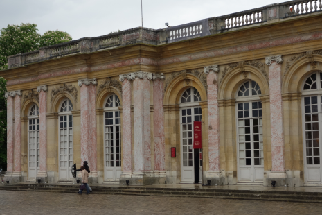 원래는 기차를 타고 이동하려고 했지만 비가 오기 시작하면서 기차 줄이 아까 입장하던 줄 만큼 길어졌습니다. 거기에 태블랫에 담아간 지도를 보니 걸어볼만도 하다는 생각에 걷기 시작~ 한 20분 걸어서 분홍색 대리석의 그랑 트리아농 도착