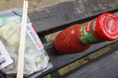 중간에 까르푸를 보고 내려서 초밥이랑 토마토주스로 끼니를 해결했습니다.(무슨 정류장이었는지 기억이 가물가물)