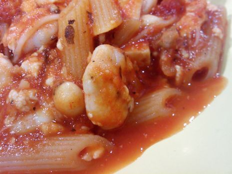 3. 펜네 삶은 것이랑 소스랑 섞고 적당히 섞은 후(이 사진만 보면 떡볶이 같군요 ^^)