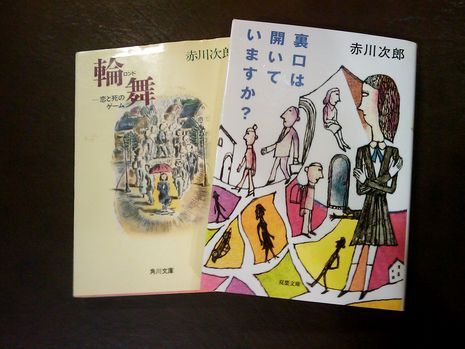 핸드폰 카메라로 찍어서 화질이 그리 좋지 않은 점 양해해주세요. ( _ _ )01번. 아카가와 지로 소설 원서 두 권 아카가와 지로의 소설 [裏口は開いていますか](1981)과 [輪舞ロンド - 恋と死のゲーム ](1994)입니다.