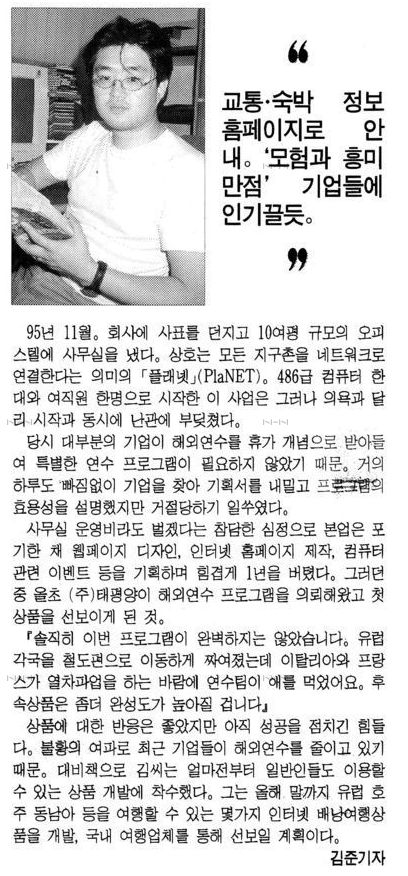 네이버 뉴스라이브러리로 다른 검색하다가 우연히 발견~ [딴지일보] 사이트 오픈이 1998년 07월 04일이라고 하니 오픈 1년 전에 했던 일인듯~ 29살이라니 사진이 지금과 사뭇 다르네요 :-)